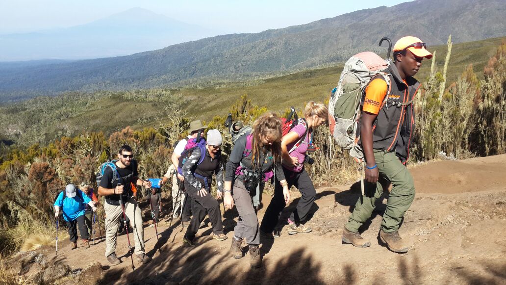 So after enjoying their first night on the mountain, day 2 of climbing is now underway for our adventurous Team Alpine. Today will see them trek from Machame camp to Shira 1 Camp.