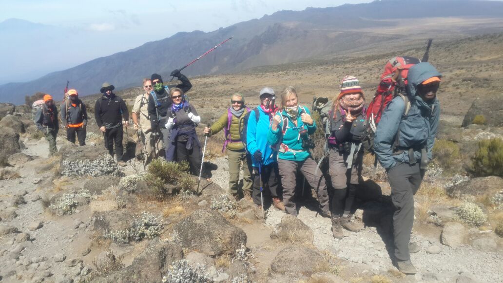 The Lava Tower ascent is quite gradual, and they will have an opportunity to rest and eat lunch when they arrive. Along the way, they will have excellent views of Helm Glacier, the Western Breach and Kibo. This will be their toughest day so far and they may for the first time feel the altitude.