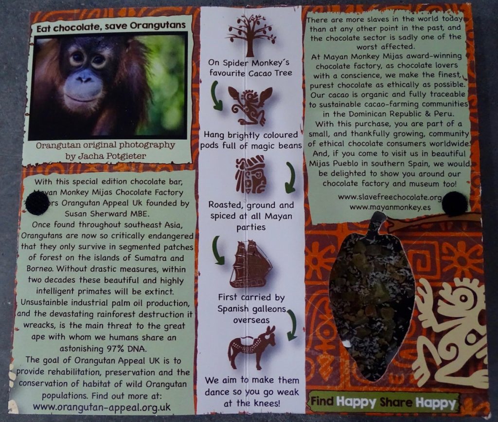 The packaging of the chocolate all include photos taken by Jacha and money from the sale of each pack of chocolate goes to Ape Action Africa and Orangutan Appeal UK