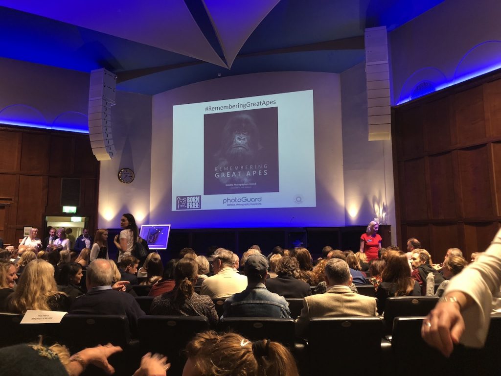 The following evening it was off to the Royal Geographical Society for the official launch of the Remembering Great Apes book, this was a fully packed evening hosted by Margot Raggett, creator of the Remembering Wildlife series. During the evening there were talks from conservationists Ian Redmond OBE, Ofir Drori, Julien Polet, Mwiga Mambo, Cheryl Knott and Tim Laman, an astonishing auction of magical lots and a chance for guests to buy a copy of the book and get it signed by 35 of the 72 contributing photographers.