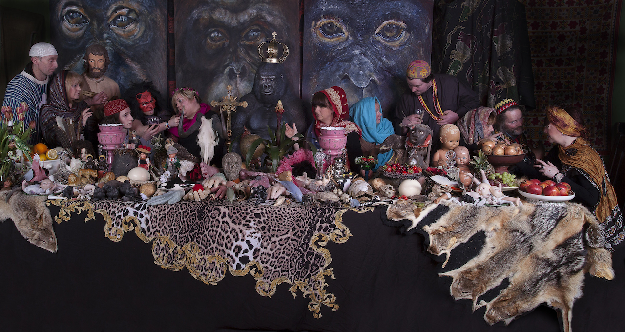 Jacha wanted to create a piece that made people aware of the tragic story of what is happening to the apes. Loss of natural environment, palm oil, bushmeat and the pet trade are all factors that put apes on the endangered list. It is such a sad story, that the only thing Jacha can associate it with is The Last Supper.